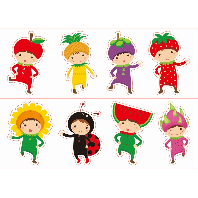 8 מדבקות פירות על בסיס מדבקה שקופה